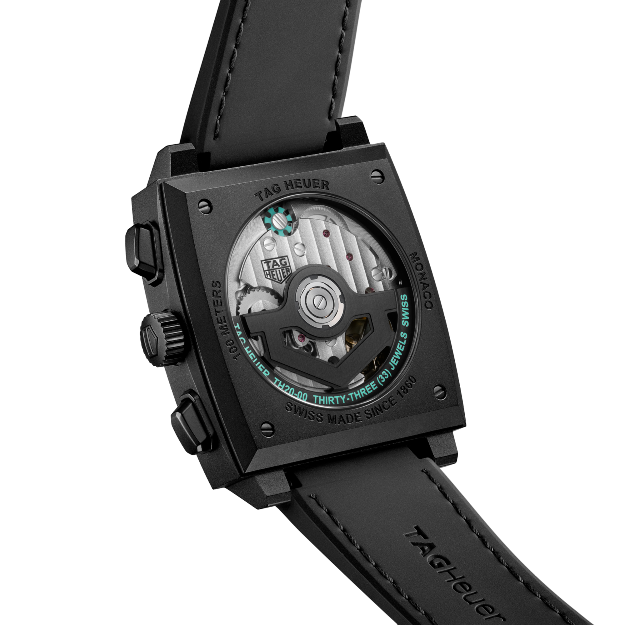 Bold avant-garde design features and irreverent looks make up this unique TAG Heuer Monaco. Its vivid turquoise touches stand out superbly against the black dial, while the technical Calibre Heuer 02 ensures extreme precision. Fierce and unruly.