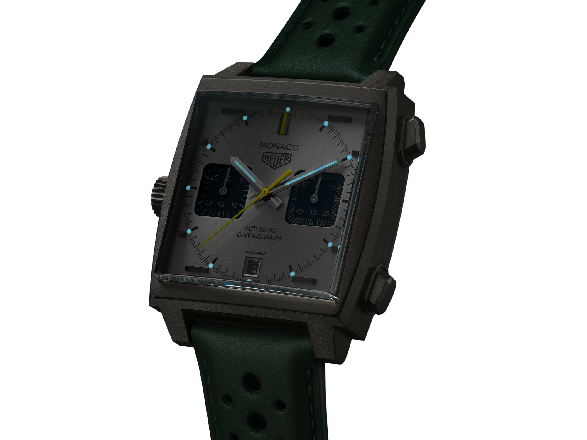 Experience the essence of racing history with the TAG Heuer Monaco Chronograph Racing Green. A bold take on the Monaco’s motorsport heritage, this charismatic timepiece embodies the vibrant yet elegant aesthetics of the Monaco’s indomitable character, inspired by the iconic racing green livery – a nod to the storied past of British racing cars. The perfect watch for the gentleman driver, limited to only 1,000 pieces.